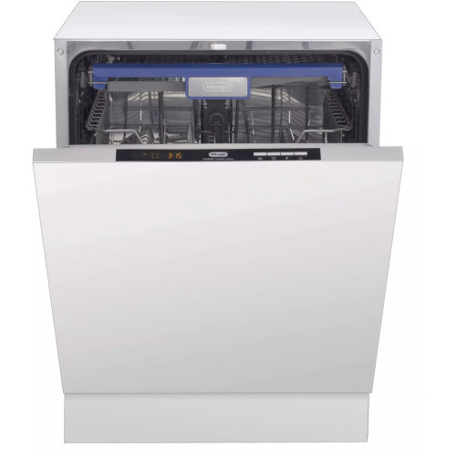 Посудомоечная машина DeLonghi DDW06F Cristallo ultimo, как и все приборы в серии Ultimo, обладает большой вместимостью. Эта встраиваемая полноразмерная модель рассчитана на 14 комплектов, при этом возможна половинная загрузка. Для больших семей и людей, собирающих большие компании на ужин, она станет неоценимой помощницей. Ключевые технические преимущества: 6 программ и 4 температурных режима; автосенсоры жесткости и чистоты воды; полностью сенсорное управление; опция «луч на полу», которая подскажет время окончания цикла; низкий расход воды и электроэнергии. Продуманный программный пакет позволит выбрать нужную программу из списка. Функция предварительного замачивания упростит мытье фильтра вытяжки или кастрюли с пригоревшей кашей. Экономичный режим идеален для быстрого мытья слабозагрязненной посуды. Другие достоинства: отсрочка запуска на срок от 1 до 24 часов; удобный LCD-дисплей с индикацией; защита от детей (при старте блокируется дверца и панель). Делонги DDW06F Cristallo ultimo имеет закрытую панель управления, поэтому световая проекция на полу и акустический сигнал помогут понять, когда закончились мытье и сушка. Способ сушки — конденсационный, после не остается разводов и потеков даже на стеклянных бокалах. Корзина регулируется по высоте, а благодаря яркой подсветке посуду удобно размещать внутри камеры. Внутренний бак полностью из нержавеющей стали, вдобавок обладает полной защитой от протечек AquaStop. Тип: встраиваемая Вид : полноразмерная Цвет панели управления: черный Вместимость, комплектов посуды: 14 Высота, см: 81.5 Ширина, см: 60 Глубина, см: 55 Габариты ниши для встраивания (В х Ш х Г), см: 82 х 60 x 57 Сушка: конденсационная Программы, шт.: 6 Температурные режимы, шт.: 6 Использование средств 3 в 1: да Отсрочка старта, ч: да Стандартная: да Интенсивная: да Экспресс: да Экономичная: да Деликатная: да Автоматическая: да Спецпрограмма для кастрюль: да Половинная загрузка: да Полоскание: да Предварительное замачивание: да Автоматическая установка жесткости воды: да Защита от детей: да