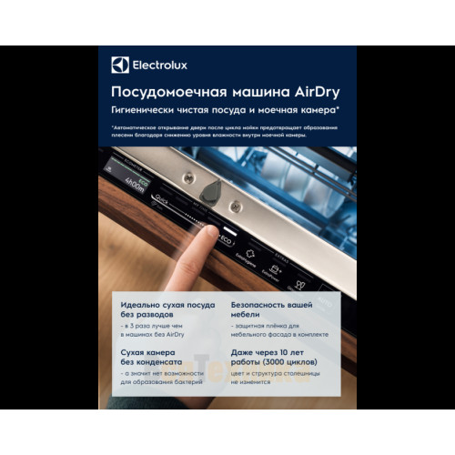- Технология сушки AirDry после окончания всех программ открывает дверцу на 10 см, благодаря чему посуда досушивается при естественной циркуляции воздуха. Это экономичный и удобный вариант.