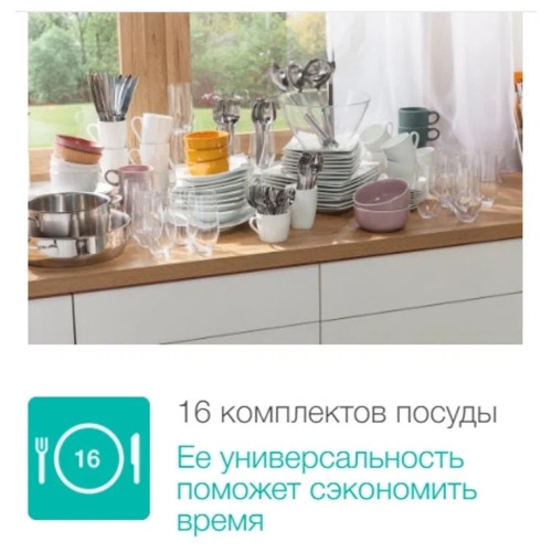 | Вместимость, комплектов | 16 |