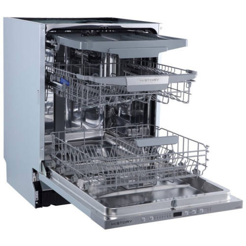 Встраиваемые посудомоечные машины HiSTORY - это надежные и безопасные устройства высокой эффективности. Модель HiSTORY DI67BC MSS вмещает до 14 комплектов посуды. В верхней части находится компактный выдвижной поддон для столовых приборов. Для комфортного размещения габаритных предметов посуды можно отрегулировать по высоте среднюю корзину. Выберите подходящую программу из 7 режимов, установите при необходимости отсрочку старта (1 – 24ч), и ваша посуда всегда будет чистой. Автоматическое открытие дверцы подскажет, когда цикл работы будет окончен. Посудомоечная машина оснащена комплексной защитой от протечек и системой АкваСтоп. Модели присвоены высшие классы А мойки и сушки, класс энергоэффективности А+++.