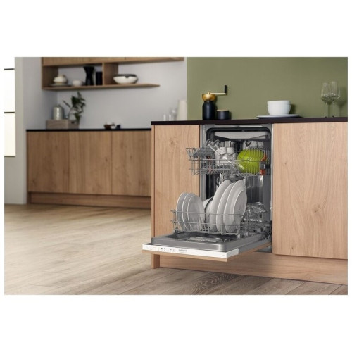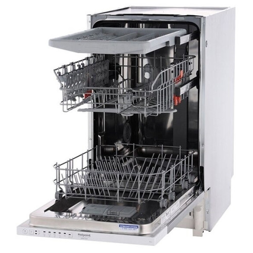 Встраиваемая посудомоечная машина Hotpoint-Ariston HSIC 2B27 FE поддерживает пять режимов работы. Вы можете выбирать сбалансированную, экономичную, интенсивную и деликатную программу. Вам также доступен 40-минутный ускоренный цикл, позволяющий ополоснуть посуду во время смены блюд. Инверторный привод Плавная регулировка мощности делает машину надёжной, экономичной и тихой. Её уровень шума лишь ненамного выше, чем у компрессора холодильника. Полная безопасность Смело включайте устройство перед выходом из дома. Система Aquastop защитит квартиру от затопления, остановив подачу воды при переполнении бака, повреждении шланга или другой неисправности. ТРИ уровня загрузки Распределяйте посуду правильно и делайте мойку ещё более эффективной. В нижней корзине поместятся кастрюли и большие тарелки, в верхней – чашки и блюдца, а в дополнительном лотке – столовые приборы. Удобство использования Чтобы узнать, завершена ли программа, просто посмотрите вниз. Машина снабжена индикатором, проецирующим луч на пол.