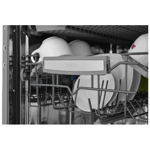 Встраиваемая посудомоечная машина Jacky's JD FB5301 шириной 60 см и инверторным двигателем разработана ведущими английскими дизайнерами и инженерами по европейским стандартам качества. Внушительная вместимость до 15 комплектов посуды, интуитивно понятное управление, расширенный набор функций, минимальный расход воды и эргономичное внутреннее пространство спасут от рутинной домашней работы и позволят выделить время на по-настоящему приятные занятия! Бесшумный инверторный двигатель способствует долгой и надёжной службе посудомоечной машины. В совокупности с системой Silent Wash значительно снижается уровень шума до 44 децибел, что даёт возможность мыть посуду в любое удобное время. Dual Pro Wash - функция позволяет мыть одновременно посуду с разными типами загрязнений при двух разных давлениях воды. Засохшая грязь на сковороде обязательно отмоется в нижней корзине, в то время как в верхней будут бережно мыться хрупкие бокалы. Jet Wash - очищает не сильно загрязнённую посуду (кофе, молоко, чай и.т.д.) всего за 18 минут! Эта программа является одной из самых быстрых программ в мире и рассчитана до 4-х комплектов посуды. Благодаря системе автоматического открытия двери во время фазы сушки происходит выход горячего воздуха из посудомоечной машины, что обеспечивает более эффективный процесс сушки за счёт экономии электроэнергии. Удобная световая индикация позволяет отследить окончание цикла программы. Во время завершения этапа сушки на пол проецируется мягкое световое пятно, что сигнализирует о том, что цикл работы закончен. Функция «3 в 1» позволяет посудомоечной машине распознавать таблетки и капсулы, которые содержат моющее средство, ополаскиватель, соль. Состав данных таблеток сложный, именно поэтому посудомоечная машина распознает слои и растворяет их постепенно, в зависимости от цикла мойки. Отсрочка старта до 19 часов помогает экономить электроэнергию и правильно распределять свое время, назначая старт работы цикла мойки посуды на то время, которое необходимо.