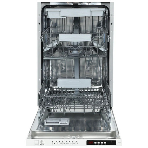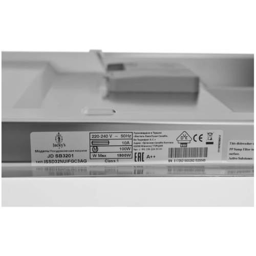Встраиваемая узкая посудомоечная машина Jacky's JD SB 3201 шириной 45 см разработана ведущими английскими дизайнерами и инженерами по европейским стандартам качества. Отличная вместимость до 10 комплектов посуды, расширенный набор функций, минимальный расход воды и эргономичное внутреннее пространство сделают данную модель настоящей помощницей в любом современном доме! К основным преимуществам посудомоечной машины относятся: Технология половинной загрузки экономит потребление электроэнергии и воды при неполной загрузке посудомоечной машины. Средняя полка c возможностью регулировки по высоте является дополнительной зоной для мытья вилок, ложек, кофейных чашек и помогает использовать внутреннее пространство посудомоечной машины более эффективно. Обеспечивает превосходную мойку класса А в соответствии со стандартами EN всего за 50 мин. Данная функция подходит для посуды со стандартными загрязнениями. Устанавливает необходимую температуру и продолжительность мытья в автоматическом режиме благодаря наличию сенсоров, определяющих уровень загрязнения посуды. Фильтр грубой очистки и микрофильтр обеспечивают наивысший уровень гигиены, благодаря удалению из воды в процессе мытья посуды до 99,9% вредных микробов и бактерий. Отсрочка до 19 часов помогает экономить электроэнергию и правильно распределять свое время, назначая старт работы цикла мойки посуды на то время, которое необходимо. Обеспечивает безопасность использования посудомоечной машины и спасает дом от затопления во время аварийных ситуаций. Система срабатывает в случае протечки или разрыва шланга.