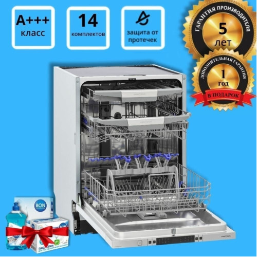 тип установки: встраиваемая полностью, тип: полноразмерная, ширина: 59.80 см, высота: 86.50 см, глубина: 55 см, инверторный двигатель, программы: автоматическая, быстрая, деликатная, интенсивная, предварительное ополаскивание/замачивание, стандартная, экономичная, 90 минут, тип сушки: конденсационная, вместимость: 14 комплектов, управление: сенсорное, особенности: дисплей, Автоматическое открывание двери, Внутреннее освещение, Звуковой сигнал, Использование средств 3-в-1, Регулировка высоты корзин