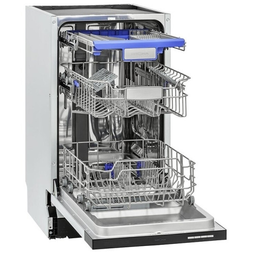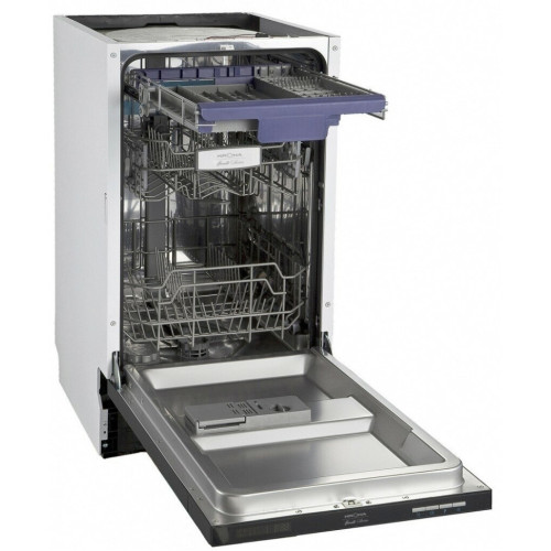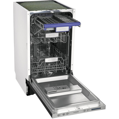 Встраиваемая посудомоечная машина шириной 45 см вмещает 10 комплектов посуды.Благодаря регулируемой по высоте корзине Dual Space и регулируемому верхнему лотку для столовых приборов загрузка посуды стала максимально комфортной и удобной, а программа половинной загрузки позволяет экономить воду и электроэнергию.