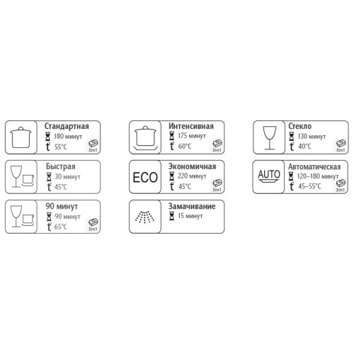 | Индикаторы наличия средств | ополаскивателя, соли |