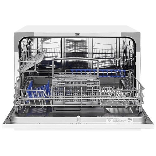 компактная: 55 см вместимость: 6 комплектов мойка: 6 программ, класс A расход воды: 6.5 л установка: отдельно стоящая сушка: конденсационная, класс A класс энергопотребления: A+ уровень шума при работе: 49 дБ