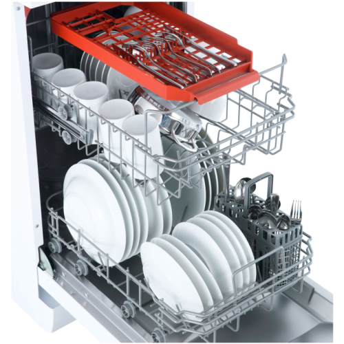 Модель DW 4562 имеет компактные габариты, отличные показатели потребления воды и электричества . Однако это не влияет на производительность и количество комплектов посуды. Набор режимов включает ускоренные и экономичные, для которых нужно еще меньше ресурсов. С конденсационной сушкой любимая посуда дольше сохранит свою красоту. Устройство не требует подачи горячей воды, нагрев происходит внутри него. Это важное преимущество, поскольку холодная водопроводная вода чище и ее не отключают в летнее время. Посудомоечная машина оснащена системой AquaBlock, которая поможет избежать протечек, и функцией отложенного старта до 9 часов, благодаря чему посуду можно мыть даже ночью. Кроме того, модель работает тихо, поэтому вам не придется переживать о том, что шум потревожит чей-то сон.