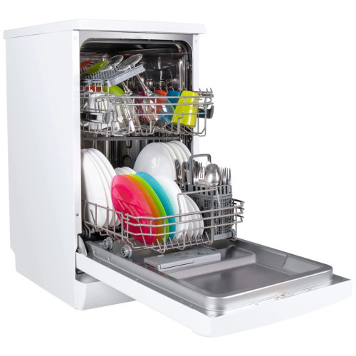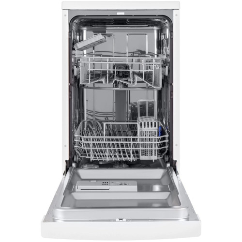 Узкая отдельностоящая посудомоечная машина шириной 45 см. Благодаря использованию специально разработанных корзин позволяет вымыть 9 комплектов посуды. Внутренняя поверхность выполнена из нержавеющей стали толщиной 0.6-0.8 мм, что обеспечит долгий срок службы при активном использовании. Электронное управление с дисплеем расположено на фронтальной части загрузочной дверцы. Функционал данной модели позволяет вам: выбрать программу мойки, включить половинную загрузку, которая позволяет выбрать для мытья посуды либо верхнюю, либо нижнюю корзину, выставить время отсрочки старта (1-24 часов), включить блокировку от детей.