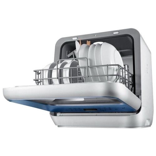 Компактная настольная посудомоечная машина Midea MCFD-42900 Mini шириной 42 см. Благодаря низкому уровню энергопотребления посудомоечной машине присвоен класс энергоэффективности А. Также качеству мойки и сушки присвоен класс А. Уровень шума во время работы не превышает 58 дБ. Вместимость посудомоечной машины позволяет загружать одновременно до 2 комплектов посуды. За стандартный цикл работы расходуется 5 литров воды. Midea MCFD-42900 Mini оснащена электронным блоком управления и цифровым дисплеем. Функционал модели дополнен 6 различными программами мытья посуды и 4 температурными режимами. Среди программ есть интенсивный режим, экспресс-цикл. Также предусмотрена специальная программа для мытья хрупкой посуды, детский режим. Предусмотрена турбосушка посуды. Таймер откладывает начало работы до 24 часов. Система индикации сообщает о наличии ополаскивателя. Моечная камера подсвечивается изнутри.