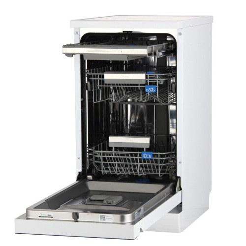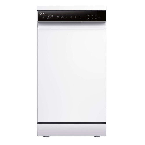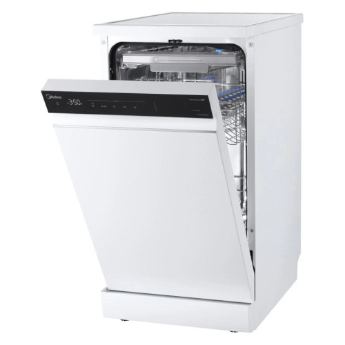 Посудомоечная машина Midea MFD45S510Wi, белая — отдельностоящая узкая модель, вмещающая до десяти комплектов. Энергопотребление прибора соответствует классу А++, за цикл расходуется 0,7 кВт*ч и тратится 9 л воды. Уровень шума при работе достигает 44 дБ. Модель предлагает широкий выбор программ: «Автоматическая», «Интенсивная» (60°С), «Быстрая 30 минут» (45°С), ECO (45°С), «90 минут» (65°С), «Стекло» (40°С), «Ночная». Режим Hygiene Care+ устранит неприятный запах и бактерии. Управление электронное, все активные установки отображают светодиодные индикаторы. Поддерживается «Половинная загрузка» — пригодится, если посуды немного и позволит сэкономить ресурсы. Запустить мойку в удобное время, например, в период действия низких тарифов на электроэнергию, поможет таймер отложенного старта (от 1 до 24 часов). Предусмотрена «Защита от детей» — блокировка доступа к настройкам. Возможно удаленное управление со смартфона с помощью приложения mSmartHome. Внутреннее оснащение представлено тремя коробами, верхний предназначен для столовых приборов и прочей мелкой кухонной утвари. Безопасность обеспечивается системой защиты от протечек.
