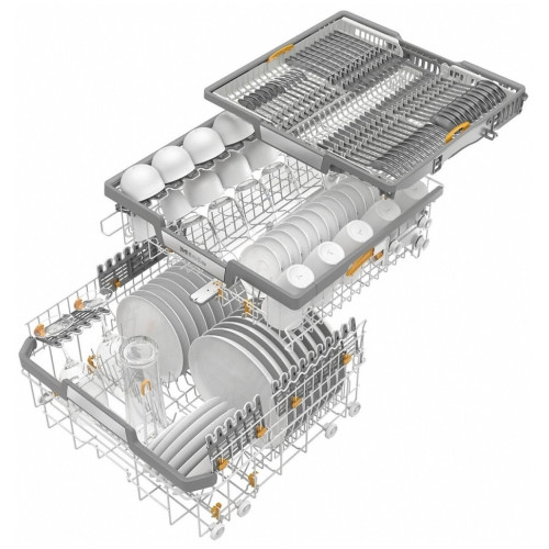 | Особенности конструкции | автоматическое открывание дверцы по завершении цикла, дисплей, использование средств 3 в 1, открывание без ручки, подсветка камеры, регулируемая по высоте корзина для посуды, таймер отсрочки |