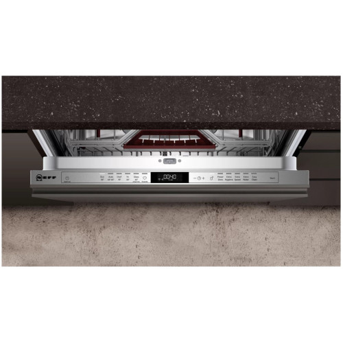 Встраиваемая посудомоечная машина Neff S157HCX10R с энергоэффективностью класса А и вместимостью до 14 комплектов посуды, отличает надежность и долговечность. Важная особенность прибора — индикатор Timelight. Timelight – это проекция хода программы на пол. Еще одной заботой меньше. Не надо помнить, сколько времени осталось до конца программы. Не надо прерывать процесс мойки, чтобы узнать, когда она закончится. Вся информация проецируется на пол перед посудомоечной машиной. Программа шеф 70 °C: эксперт по удалению сложных загрязнений с кастрюль и сотейников. Chef 70° - это как раз тот случай, когда к противню или форме для запекания пристала корка. Предоставьте эту сложную задачу эксперту и расслабьтесь. Эксклюзивная программа Chef 70 °C от Neff возьмет всю работу на себя. Присохшие крахмал и белок на кастрюлях, грязные столовые приборы, сотейники и пригоревшие остатки пищи – все эти неприятные проблемы будут решены с блеском на вашей посуде. Home Connect: новый уровень использования прибора с возможностью удаленного и голосового управления, удаленного сервиса и обновления программного обеспечения. Система Glass Care: регулировка жесткости воды и защита чувствительного стекла. Glass Care - это высший уровень мытья посуды – это блестящие бокалы без налета и царапин. Раз за разом. Качество мойки в незаметных, но очень важных деталях – это система защиты стекла Glass Care. В это сложно поверить, но посудомоечная машина NEFF сама отслеживает и регулирует уровень жесткости воды. Именно поэтому бокалы останутся блестящими и новыми. AquaStop: стопроцентная гарантия от протечек. Бережное отношение к хрупкой посуде и экономия электроэнергии благодаря передовой технологии Hygiene Dry (на основе технологии теплообменника). Специальный отсек Dosage Assist в ручке короба обеспечивает своевременное и равномерное растворение комбинированных моющих средств (таблеток и капсул). Бесщёточный мотор Eco Silence Drive с инверторным управлением обеспечивает эффективную работу с минимальным уровнем шума и сокращает расход воды. Посудомоечная машина подстраивается под тип моющего средства, обеспечивая оптимальный результат мытья. Стопоры на передних колесах нижней корзины предотвращают сход корзины с направляющих. Колеса с низким коэффициентом трения на нижнем стеллаже и 3-м уровне загрузки. Vario Drawer - три положения верхнего короба с системой Rackmatic-3, легко переставить по высоте даже при полной загрузке. Складывающиеся направляющие для тарелок в нижнем коробе.
