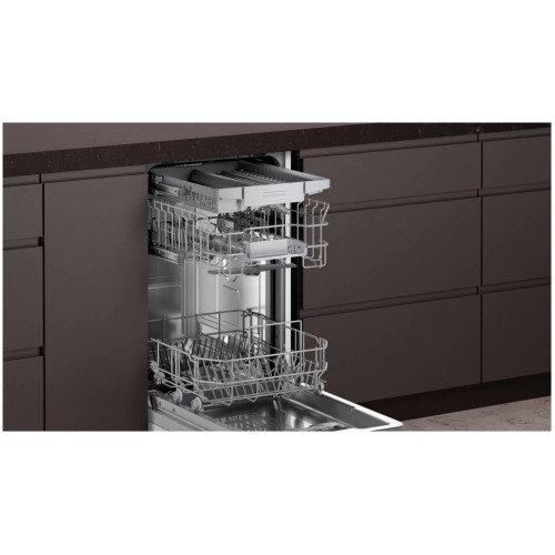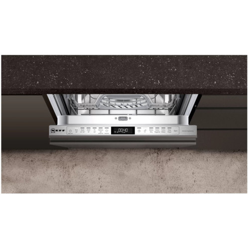 Полновстраиваемая посудомоечная машина. 6 программ: Эко 50 C°, Auto 45-65 C°, Chef 70 C°, 1h 65 C°, Silence 50 C°, предварительное полоскание. 4 специальные функции: удалённый запуск через приложение на смартфоне, дополнительная сушка, HygienePlus, Extra Rinse. Бережное отношение к хрупкой посуде и экономия электроэнергии благодаря передовой технологии HygieneDry (на основе технологии теплообменника). Специальный отсек DosageAssist в ручке короба обеспечивает своевременное и равномерное растворение комбинированных моющих средств (таблеток и капсул). Бесщёточный мотор EcoSilenceDrive с инверторным управлением обеспечивает эффективную работу с минимальным уровнем шума и сокращает расход воды. Превосходное качество мытья даже в углах и самых труднодоступных местах благодаря двойному вращающемуся коромыслу DuoPower в верхнем коробе. Посудомоечная машина подстраивается под тип моющего средства, обеспечивая оптимальный результат мытья. Aqua Stop 10 лет гарантии от протечек говорят о многом. В первую очередь о том, что при правильной установке конструкция системы AquaStop от NEFF никогда не дает сбоев. Система перекрывает клапан рядом с краном и моментально предотвращает протечку. Надежно, вовремя и с гарантией. Chef 70° Это как раз тот случай, когда к противню или форме для запекания пристала корка? Предоставьте эту сложную задачу эксперту и расслабьтесь. Эксклюзивная программа Chef 70 °C от NEFF возьмет всю работу на себя. Присохшие крахмал и белок на кастрюлях, грязные столовые приборы, сотейники и пригоревшие остатки пищи – все эти неприятные проблемы будут решены с блеском на вашей посуде. Home Connect Интеграция в систему «умного дома» – будущее для всей техники, которое доступно уже сегодня с посудомоечной машиной NEFF. Home Connect позволит вам выбирать программы, регулировать скорость и тишину работы, осуществлять удаленный сервис, получать полезную информацию и советы, а также обновлять программное обеспечение прибора в будущем с помощью приложения. Инверторный двигатель обеспечивает тихую и энергоэффективную работу прибора. Именно его износостойкая бесщеточная конструкция позволяет посудомоечной машине служить 10 лет и мыть посуду максимально быстро с рекордно низким уровнем шума. Он слишком тихий, чтобы его могли услышать. Rackmatick Вам бы хотелось, чтобы посудомоечная машина подстраивалась под вас? NEFF позаботился и об этом. Повседневный обед, десерт или большие блюда и противни – посудомоечная машина с регулировкой высоты коробов Rackmatick позволяет регулировать высоту полностью заполненных коробов одним движением. DosageAssist Мытье посуды с NEFF – это когда все продумано до мелочей. Таблетка с моющим средством не попадет в чашку и не будет там лежать до конца мойки. Она попадет в специальный отсек, полностью растворится в правильное время, в правильном месте и гарантирует идеальный результат мытья для всей посуды. ExtraDry Сушка пластика – сложная задача. Но только не для посудомоечной машины с функцией ExtraDry. Вы решили помыть все ваши контейнеры? Это не проблема. Дополнительная обработка горячим паром на этапе сушки обеспечит идеальный результат. Избранная программа Иногда мы точно знаем, чего хотим от мойки. Эксперименты закончились, и вы уже выбрали свою любимую программу и функцию? Сохраните их как "Избранные" c помощью приложения Home Connect или прямо на посудомоечной машине и запускайте любимую комби