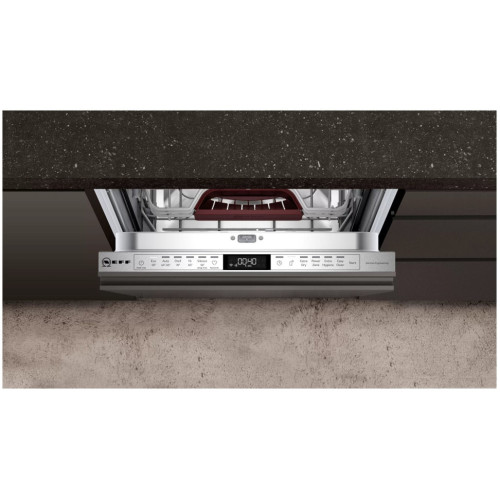 Мытьё посуды с NEFF — это когда всё продумано до мелочей. Благодаря технологии DosageAssist таблетка с моющим средством попадёт не в чашку, а в специальный отсек, полностью растворится в правильное время, в правильном месте и гарантирует отличный результат мытья посуды. Программа «Шеф 70°C» — эксперт по удалению сложных загрязнений с кастрюль и сотейников. Присохшие крахмал и белок на кастрюлях, грязные столовые приборы, сотейники и пригоревшие остатки пищи — эксклюзивная программа справится с любыми загрязнениями. Инверторный двигатель обеспечивает тихую и энергоэффективную работу прибора. Его износостойкая бесщёточная конструкция позволяет машине мыть посуду максимально быстро и с низким уровнем шума. При правильной установке конструкция системы AquaStop от NEFF никогда не даёт сбоев. Система перекрывает клапан рядом с краном и моментально предотвращает протечку. Премиальная технология Zeolith — самая инновационная и энергоэффективная технология сушки. Натуральный минерал цеолит обладает естественным свойством поглощать влагу и трансформировать её в тепло. Это фантастическое свойство использовано в посудомоечных машинах. До тех пор, пока в камере есть влага, Zeolith, находящийся в специальном отсеке, поглощает её и превращает в тепло. Вы получаете абсолютно чистую, блестящую посуду без капли влаги. Функция ExtraDry дополнительно обрабатывает пластик горячим паром на этапе сушки, обеспечивая идеальный результат. Технология DoorOpenAssist — эстетичное и удобное решение для современных кухонь с гладкими поверхностями. Чтобы открыть посудомоечную машину ручка больше не нужна — достаточно лёгкого нажатия. Timelight — маленький проектор, который вы получаете вместе с посудомоечной машиной. Не надо помнить, сколько времени осталось до конца программы. Не надо прерывать процесс мойки, чтобы узнать, когда она закончится. Вся информация проецируется на пол перед посудомоечной машиной. Технология Home Connect позволит вам выбирать программы, регулировать скорость и тишину работы, осуществлять удалённый сервис, получать полезную информацию и советы, а также обновлять программное обеспечение прибора с помощью приложения. Любимую программу и функцию можно сохранить в «Избранном» c помощью приложения Home Connect или прямо на посудомоечной машине.