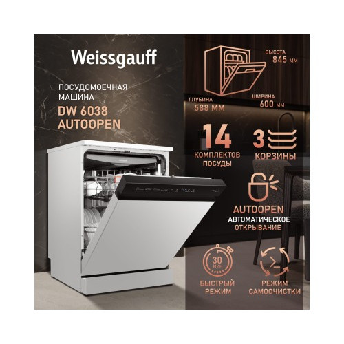 Посудомоечная машина с авто-открыванием Weissgauff DW 6038 Autoopen
