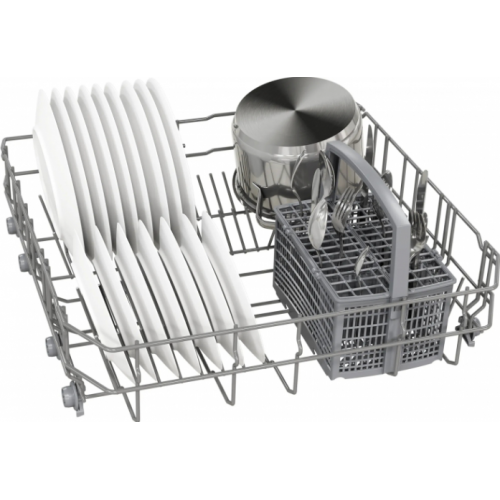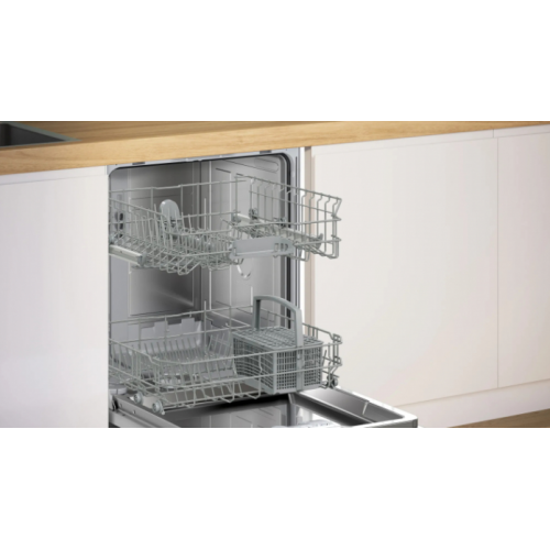 Bosch SMV25AX06E Категория: Посудомоечные машины Серия: Serie | 2 Тип: Полноразмерная Тип установки: Встраиваемая полностью Тип сушки: Hygiene Dry Тип управления: Электронное Панель управления: сверху Сенсор чистой воды Индикатор на полу: Луч Индикатор наличия соли / ополаскивателя Сушка посуды: Конденсационная Защита от протечек: Полная использования воды для максимальной эффективности мытья посуды. 1 Дополнительная функция: SpeedPerfect Plus Технология сушки Теплообменник Аквасенсор Ассистент дозирования Инновационная система фильтрации из 3 частей Система защиты стекла GlassProtect Альтернативная техника мойки Электронная регенерация Проточный водонагреватель Корзинная система Система корзин Vario Серебристо-серые корзины с выдвижной ручкой Регулировка высоты верхней корзины 2 полки для чашек в верхней корзине Корзина для столовых приборов в нижней корзине Удобство использования и показатели производительности Панель управления сверху Светодиодный индикатор фазы программы Таймер - электронная задержка запуска на 3/6/9 часов Звуковой сигнал окончания программы InfoLight (луч на полу) - проецирует красный индикатор на пол во время цикла мойки EasyLock Регулировка высоты задней ноги спереди Красные индикаторы Индикатор соли на панели Индикатор отсутствия ополаскивателя на панели Технологические решения и оборудование ЭкоСайленс Драйв - Инверторный двигатель Автоматическое распознавание моющих средств Лист, защищающий столешницу от пара АкваСтоп: гарантия Bosch на повреждения, вызванные разливом воды — на весь срок службы устройства. Материал ванны посудомоечной машины: нержавеющая сталь / дно Polinox. Программы мойки: Количество программ: 5 Количество температурных режимов: 4 Интенсивная 70°C Авто 45-65°C Эко 50°C 1 час при 65°C Предварительное полоскание Характеристики: Ширина: 60 см Вместимость: 12 комплектов Класс энергопотребления: Е Класс мойки: A Класс сушки: A Время мойки при обычной программе: 60 мин Расход воды: 11.7 л Максимальная потребляемая мощность: 2400 Вт Уровень шума: 48 дБ Размеры прибора (ВхШхГ): 815х598х550 мм Вес нетто: 33 кг Цвет панели управления: Черный Цвет корпуса: Серебристый Бренд: Bosch Модель: SMV25AX06E