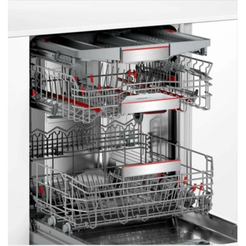 Инновационная сушка PerfectDry на базе технологии Zeolith Теплый воздух в результате преобразования влаги равномерно циркулирует, мощно и вместе с тем бережно высушивает посуду. В результате у вас безупречно чистая и сухая посуда, без капель и разводов, даже если она изготовлена из пластика. Home Connect Передовые технологии в вашей посудомоечной машине. Просто выберите программу и контролируйте работу посудомоечной машины с помощью приложения Home Connect. Или активируйте функцию Easy Start для автоматического выбора оптимальной программы в зависимости от типа и количества посуды, а также степени ее загрязнения. Hygiene Plus для стерилизации детской посуды Функция HygienePlus поможет вам обеспечить максимальную гигиену и безопасность. Финальное ополаскивание водой с температурой 70°C гарантирует уничтожение 99,99% бактерий, благодаря чему достигается максимальный уровень гигиены. Чистота и блеск, за которые стоит поднять бокалы Сколько раз, вынимая бокалы из посудомоечной машины, вы обнаруживали, что они отнюдь не чистые и не сухие и их снова нужно мыть? Новая программа Glass 40° бережно моет бокалы, даже хрустальные, обеспечивая при этом оптимальную сушку и блеск. Третий уровень загрузки VarioDrawer: Больше пространства для посуды Вместительный выдвижной ящик VarioDrawer позволяет обойтись без отдельной корзины для столовых приборов, обеспечивая оптимальное использование пространства - теперь есть возможность разметить до 14 комплектов посуды. Система регулировки по высоте поможет оптимизировать пространство посудомоечной машины Вместительный верхний короб можно регулировать по высоте. Теперь вы сможете загрузить в нижний короб даже самую большую посуду. TimeLight Функция TimeLight полностью заменяет скрытый на время работы дисплей прибора, проецируя белым цветом на напольное покрытие время до окончания программы, текущий этап программы и общую статусную строку. Невероятно тихая 41 dB Поддерживать чистоту в доме бывает сложно, а сохранить в нём тишину порой, кажется, просто невозможно. Теперь это не проблема. Посудомоечная машина работает тихо, не нарушая покой в доме. Bosch самый тихий бренд посудомоечных машин. AquaStop Система AquaStop: круглосуточная защита от любых протечек, как внутри прибора, так и в случае разрыва заливного шланга. Гарантия от протечек на весь срок службы прибора. Посудомоечная машина еще никогда не работала так тихо Посудомоечная машина с двигателем EcoSilence Drive обеспечит эффективную очистку наряду с низким уровнем шума. Решение EcoSilence Drive снижает шумы трения. Бесщёточный энергосберегающий двигатель работает плавно и тихо. Теперь вы можете наслаждаться и чистотой, и тишиной. Сделано в Германии