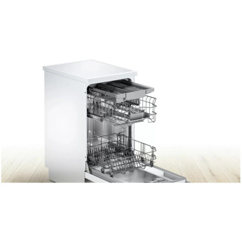 Узкая отдельностоящая посудомоечная машина сбережет драгоценное время и поместится даже на небольшой кухне. Пять уровней распределения воды обеспечат превосходный результат мытья. Режим тихой работы - снижение уровня шума, но не качества мытья посуды; Третий уровень загрузки VarioDrawer: Больше пространства для посуды; Система регулировки по высоте Rackmatic поможет оптимизировать пространство посудомоечной машины; Система Rackmatic позволяет регулировать высоту верхнего короба даже в загруженном состоянии, не снимая короб с направляющих; Система AquaStop: круглосуточная защита от любых протечек, как внутри прибора, так и в случае разрыва заливного шланга.