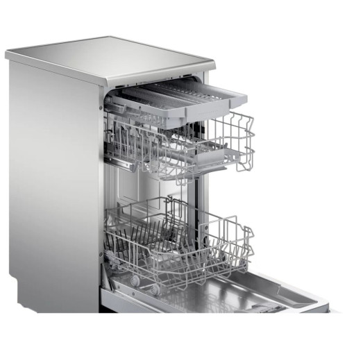 Узкая отдельностоящая посудомоечная машина cбережет драгоценное время и поместится даже на небольшой кухне. Пять уровней распределения воды обеспечат превосходный результат мытья. - Технология Home Connect с поддержкой Яндекс Алисы: дистанционное управление, диагностика и обновление программного обеспечения. - Технология Hygiene Dry позволяет сушить посуду гигиенично при закрытой двери. Это возможность избежать попадания бактерий снаружи и быть уверенными в безупречной чистоте. - Технология DuoPower (двойное верхнее коромысло) обеспечивает безупречный результат мытья с первого раза. Перемывать посуду — этот опыт должен остаться в прошлом. - Система AquaStop: круглосуточная защита от любых протечек, как внутри прибора, так и в случае разрыва заливного шланга.