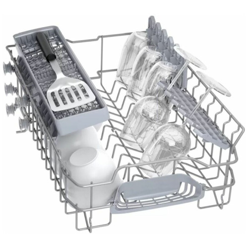 Узкая встраиваемая посудомоечная машина cбережет драгоценное время и поместится даже на небольшой кухне. Пять уровней распределения воды обеспечат превосходный результат мытья. Технология Home Connect с поддержкой Яндекс Алисы: дистанционное управление, диагностика и обновление программного обеспечения. Технология Hygiene Dry: сушка посуды гигиенично при закрытой двери. Это возможность избежать попадания бактерий снаружи и быть уверенными в безупречной чистоте. Технология DuoPower (двойное верхнее коромысло): безупречный результат мытья с первого раза. Перемывать посуду — этот опыт должен остаться в прошлом. Система AquaStop: круглосуточная защита от любых протечек, как внутри прибора, так и в случае разрыва заливного шланга. Гарантия качества Bosch: на все посудомоечные машины 10 лет гарантии от сквозной коррозии.