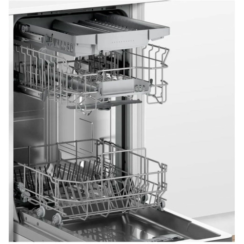 Код товара: 623607 Тип - узкая; Установка - встраиваемая полностью; Управление со смартфона - есть; Вместимость - 10 комплектов; Класс энергопотребления - F; Тип управления - электронное; Дисплей - есть; Расход воды - 9.5 л; Максимальная потребляемая мощность - 2400 Вт; Время мойки при обычной программе - 220 мин; Уровень шума при работе - 48 дБ; Количество программ - 6; Количество температурных режимов - 4; Сушка посуды - интенсивная; Стандартные программы мойки - интенсивная программа для сильнозагрязненной посуды, экспресс-программа (быстрый цикл); Специальные программы - экономичная программа для слабозагрязненной посуды, режим предварительного замачивания, автоматические программы; Таймер отсрочки запуска - есть, от 1 до 24 часов; Защита от протечек - есть, полная; Макс. температура воды на входе - 60 °C; Звуковой сигнал - есть; Индикатор на полу - луч; Индикатор наличия соли / ополаскивателя - есть / есть; Особенности рабочей камеры - внутренняя поверхность из нерж. стали, регулируемая по высоте корзина для посуды; Дополнительные принадлежности - держатель для бокалов; Размеры (ШхГхВ) - 44.8x55x81.5 см; Вес - 34.3 кг; Протокол связи - Wi-Fi;