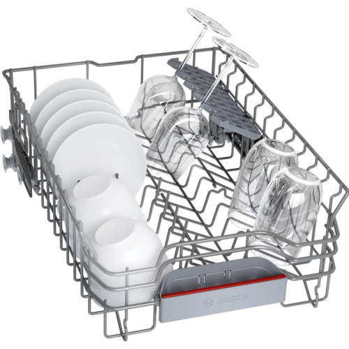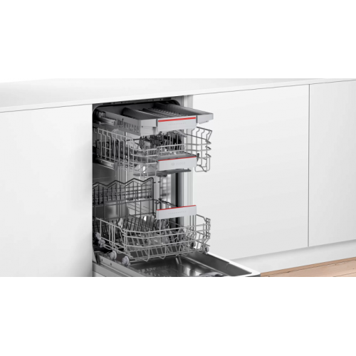 Bosch SPV6YMX01E - Установка: встраиваемая - Конструкция: узкая - Вид сушки: цеолитная - Загрузка: 10 комплектов - Тип двигателя: инверторный Управление - Тип управления: электронное - Переключатели: сенсорные - Количество программ: 6 - Программы: авто 45-65 °C, ночная 50 °C, express 60 °C, favourite - Экономичная программа: да - Интенсивная мойка: да - Дополнительные программы: предварительное ополаскивание, программа очистки - Класс мойки: A - Класс сушки: A - Поддержка Wi-Fi: да Температурные режимы - Температурные режимы: 45, 50, 60, 65, 70 °С - Максимальная температура воды: 70 °С - Количество температурных режимов: 5 Дисплей - Цифровой дисплей: да - Тип дисплея: LED - Функции дисплея: программирование отсрочки включения, отображение времени до окончания цикла, индикация, отображение длительности программы Таймер - Таймер отсрочки: да - Максимальное время отсрочки: 24 ч Индикация - Индикация режимов работы: да - Звуковой сигнал завершения программы: да - Отключение звукового сигнала: да - Индикация времени до конца программы: да - Индикатор завершения программы: да - Индикатор наличия соли: да - Индикатор наличия ополаскивателя: да - Индикатор "Луч на полу": да Технологии - Технология DuoPower: да - Технология Zeolith: да - Функция TimeLight: да Сенсоры - Сенсор чистоты воды: да Защита и безопасность - Защита от протечек: полная - Технология защиты от протечки: AquaStop Энергопотребление - Класс энергопотребления: B - Максимальная потребляемая мощность: 2400 Вт - Энергопотребление за цикл: 0.51 кВт/ч - Напряжение: 220-240 В Отделения - Количество корзин: 3 - Регулировка высоты корзины: да - Корзина для столовых приборов: да - Полка для чашек: да - Количество полок для чашек: 1 - Откидная полка для чашек: да - Складные держатели: да - Держатель для бокалов: да Комфорт использования - Освещение внутренней камеры: да Особенности конструкции - Верхний разбрызгиватель: да - Водоумягчительная установка: да - Автоматическое открывание дверцы в конце мойки: да - Уровень шума: 45 дБ - Расход воды за цикл: 9 л - Возможность подключения к горячей воде: да - Использование средств 3 в 1: да Цвет и материал - Материал внутренней камеры: нержавеющая сталь - Цвет: серебристый Размеры и вес - Высота: 81.5 см - Ширина: 44.8 см - Глубина: 55 см - Глубина с открытой дверкой: 115 см - Высота встраивания: 875 мм - Ширина встраивания: 450 мм - Глубина встраивания: 550 мм - Вес: 35.8 кг Бренд: Bosch Модель: SPV6YMX01E