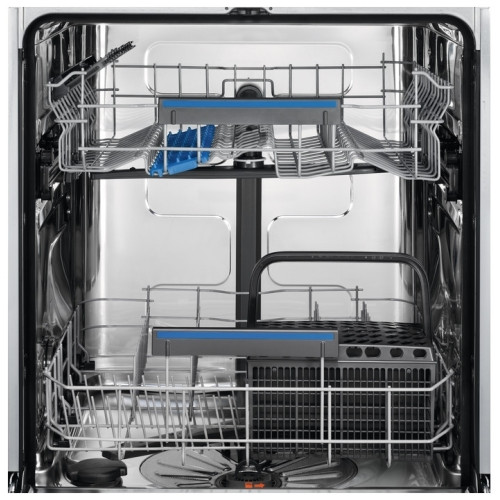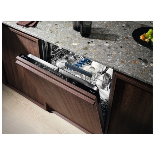 Встраиваемая посудомоечная машина Electrolux EEQ 947200 L – качественное мытье даже хрупкой посуды! Особенности За одну загрузку вы легко отмоете до 13 комплектов посуды. Внутренняя поверхность рабочей камеры выполнена из нержавеющей стали, что обеспечивает длительной срок службы прибора. Регулируемая по высоте корзина позволит вам мыть даже крупногабаритную посуду. Удобная система управления с дисплеем позволит вам с легкостью пользоваться этой посудомоечной машиной. На дисплее отображается все необходимые настройки. Индикатор наличия соли и ополаскивателя всегда подскажет о необходимости пополнения. Отложенный старт Возможность задавать время начала выполнения программы, отложив старт с момента загрузки посуды и выбора программы мойки на несколько часов. Класс энергопотребления А++ позволяет расходовать меньше электроэнергии, что экономит ваш бюджет. Наличие 8 автоматических программ. QuickSelect кардинально упрощает использование посудомоечной машины. Используйте слайдер, чтобы выбрать продолжительность программы. Одним касанием выберите дополнительные опции, если необходимо. Вот и всё - остальное машина сделает сама. Благодаря технологии AirDry дверь посудомоечной машины Electrolux EEQ947200L открывается автоматически на 10 см после окончания программы для естественного завершения сушки. Результат в 3 раза лучше по сравнению с сушкой с закрытой дверью. Вместо сигнала, двухцветный луч на полу беззвучно показывает статус программы, сохраняя тишину на вашей кухне. Красная точка показывает, что программа еще в процессе. Зелёная точка сигнализирует о её завершении.