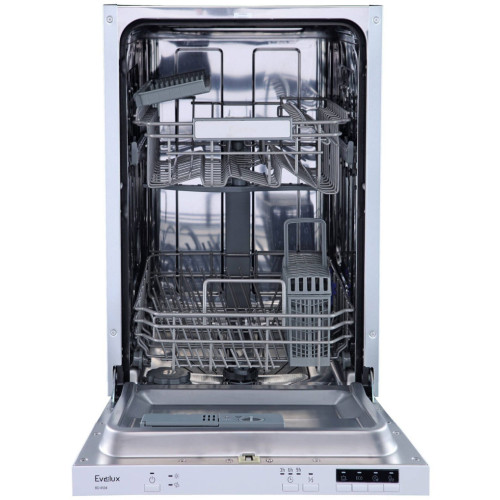 Evelux BD 4504 Габариты: 81.5x44.8x55 см Количество комплектов: 8 Класс мойки: A Класс сушки: А Класс энергопотребления: A++ Уровень шума: 49 дБ Программы: 4 Интенсивная Эко 90 минут Быстрая Дополнительные функции: Таблетки All in 1 Отложенный старт (ч): 3/6/9 Звуковая индикация Половинная загрузка Управление и индикация: Управление: электронное LED индикаторы Безопасность: Защита от протечек: частичная (корпус) Дополнительная информация: Кол-во корзин, шт: 2 Переносная корзина для столовых приборов Регулировка корзины по высоте Энергопотребление (кВт/ч): 0.74 Расход воды на цикл мойки, л: 9 Сушка: конденсационная Внутренняя поверхность: нержавеющая сталь Годовое потребление воды (по стандарту En50242): 2520 л / год Годовое потребление электроэнергии (по стандарту En50242): 197 кВт / год Потребляемая мощность (Вт): 2100 Шнур питания Длина шнура питания (м): 1.55 Двигатель: стандартный (коллекторный) Вес: 29 кг Габариты ниши для встраивания: 82-88x45х56 см