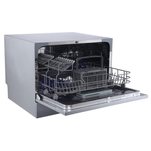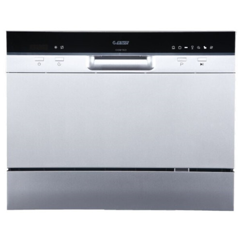 Посудомоечная машина Exiteq EXDW-T502. Цвет: серебристый. Сенсорная панель управления. Индикация: светодиодная. Звуковой сигнал. Вместимость - 6 комплектов. 6 программ мойки: интенсивная, обычная, экономичная, 1 час, деликатная, быстрая мойка. 6 температурных режимов. Сушка: конденсационная. Отсрочка старта (от 1 до 24 часов). Индикатор отсутствия соли. Индикатор отсутствия ополаскивателя. Регулировка жесткости воды: ручная. Защита от протечек. Самодиагностика. Расход электроэнергии за цикл, кВт/ч: 0,61. Расход воды за цикл, л: 6-11. Уровень шума, дБ: 49. Класс энергопотребления: A+. Класс эффективности мытья: A. Класс сушки: А. Размеры (ВхШхГ), мм: 438х550х500.