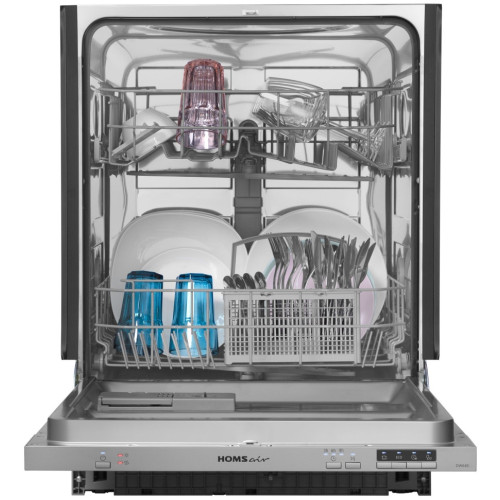 Бытовая посудомоечная машина HOMSair DW64E — это универсальная встраиваемая кухонная техника. Устройство оснащено функцией надежной защиты от протечек. Цвет корпуса машины — нейтральный серебристый. Максимальное количество размещаемых комплектов посуды составляет 12 штук. В комплект входит съемная корзина для столовых приборов разного типа. Для мытья посуды допускается использование популярных средств 3 в 1. Можно активировать функцию отсрочки старта, чтобы самостоятельно назначить время запуска машины.