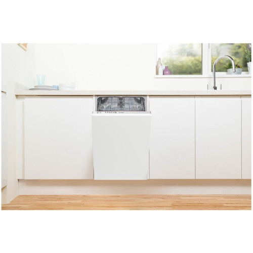Встраиваемая посудомоечная машина Indesit DSIE 2B10 вмещает десять комплектов посуды и будет особенно удобна для семьи из трёх-четырёх человек. Это компактная модель шириной 44,8 см подходящий вариант для небольшой кухни.