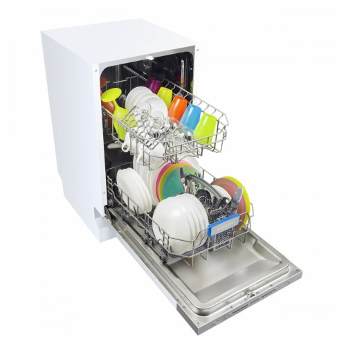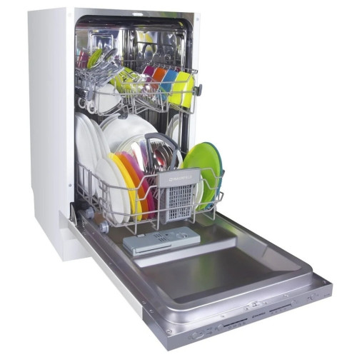 Узкая встраиваемая посудомоечная машина MAUNFELD МLP-08S предназначена для мытья до 9 комплектов грязной посуды. Можно мыть также большие кастрюли и сковородки благодаря переставляемой по высоте верхней корзине. Модель характеризуется электронным типом управления с LED-индикацией, фасад полностью закрыт мебельной панелью. Режим половинной загрузки позволяет снизить расход воды и электроэнергии. Защита от протечек AQUA-STOP гарантирует безопасную эксплуатацию прибора.