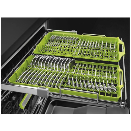 Полноразмерная встраиваемая посудомоечная машина SMEG ST65336L за один раз отмывает 13 комплектов посуды. Функция ActiveLight подскажет, когда мойка завершена — на полу появится светящаяся красная точка. 10 программ мойки подходят для посуды с разной степенью загрязнения. Для жирных кастрюль и сковород подойдет интенсивный режим, для хрупких бокалов и чашек — программа Стекло, а с тарелками после завтрака справится быстрая мойка за 27 минут. Благодаря таймеру с отсрочкой до 9 часов мойку можно запустить на ночь. Программа "Супер тихая" не потревожит сон. Верхняя корзина регулируется по высоте, даже если вы уже сложили в нее тарелки и чашки. В нижней корзине установлены складные держатели, которые можно убрать, если необходимо разместить большую кастрюлю. Для столовых приборов предусмотрен выдвижной ящик FlexiDuo.