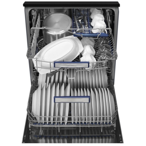 Особенности конструкции внутренняя поверхность из нержавеющей стали, дисплей, использование средств 3 в 1, регулируемая по высоте корзина для посуды, сенсор чистоты воды, таймер отсрочки