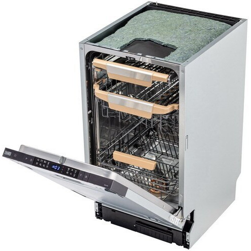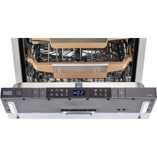 VARD VDI413L Тип: встраиваемая посудомоечная машина Количество комплектов: 10 Класс мойки: A Класс сушки: A Класс энергопотребления: A+ Управление: электронное Уровень шума: 42 дБ Программы: 8 Авто Бокалы Интенсивная Универсальная Ежедневная 90 мин Замачивание Быстрая Эко Дополнительные функции: Отсрочка старта: 1-24 часа Усиленная мойка Ускоренная мойка Половинная загрузка Управление и индикация: Луч на полу Безопасность: Защита от протечек Оснащение: Количество корзин: 3 Увеличенная третья корзина Space Max Регулировка 2 корзины по высоте: Да, 2 уровня Держатели для бокалов Дополнительная информация: Слайдерное крепление фасада Антибактериальный фильтр Габариты: 81.5x44.8x55 см Вес нетто: 37 кг Вес брутто: 42 кг
