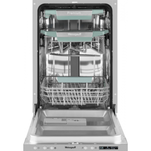 Weissgauff BDW 4139 D Timer Floor Корзины в дизайне "ECO LIFE" с легендарным узнаваемым оттенком зеленого цвета, отражают концепцию экологичности подходов Weissgauff к созданию бытовой техники! Забота о здоровье пользователя, безопасность используемых материалов и безукоризненно высокое качество мытья посуды - все это реализовано в данной модели посудомоечной машины! Три корзины, позволяющие разместить отдельно от остальной посуды в верхнем лотке сразу все ложки, вилки и ножи, обеспечивая при этом их наилучшее мытье. Функция Timer floor проецирует текущее время до окончания программы на пол. Не нужно нарушать работу посудомоечной машины, чтобы понять, на каком этапе находится мойка. До 10 комплектов посуды одновременно вы можете расположить в данной посудомоечной машине, благодаря современным продуманным и эргономичный корзинам, которыми Weissgauff оснастили эту модель Половинная загрузка, благодаря которой вы сможете помыть даже самое небольшое количество посуды, не расходуя воду и электричество больше, чем это необходимо. Дополнительная сушка даст возможность добавить еще один этап просушивания по завершении основного цикла. Благодаря этому, ваша посуда будет не только чистой, но и невероятно сухой. Режим "Стекло", прекрасно подойдет для стеклянных стаканов, тарелок, бокалов, фужеров и прочего, обеспечивая одновременно бережное обращение с помещённой посудой и отсутствие разводов на стекле после завершения цикла мойки Режим "90 минут", это гарантия великолепного результата за четко определенный заранее срок! Автопрограмма Blitz Wash поможет вам, в том случае если вы затрудняетесь с выбором программы мойки. Просто выберите авторежим, и посудомоечная машина, с помощью датчиков и сенсоров самостоятельно определит степень загрязненности вашей посуды и выберет оптимальный температурный режим и интенсивность мытья Быстрый режим, позволит вам управиться еще оперативнее: всего за 30 минут машина проведет мойку и ополаскивание. Данный режим идеально экономит ваше время и подходит для той посуды, которая не требует сушки. Экономичная программа подойдет для тех, кто хочет помыть посуду с низким уровнем загрязнений, не расходуя при этом излишне много воды! Функция дополнительной мойки эффективно удаляет жир и засохшие остатки пищи. Подойдет для посуды с сильным уровнем загрязненности, в том числе, кастрюль, тарелок и бокалов! Таймер до 24 часов, который особенно удобен, если вы ходите начать цикл мытья в ночное время или во время вашего отсутствия. Всего лишь загрузите посуду в камеру, нажмите одну единственную кнопку - и всё остальное машина сделает сама! Полностью электронное управление, интуитивно понятное даже человеку, никогда ранее не работавшему с подобной техникой, сделает процесс запуска быстрым и лёгким. Возможность дозагрузки посуды, на начальном этапе мойки будет особенно удобна в случае, если вы забыли поместить в машину забытую на столе кастрюлю или тарелку! Характеристики Тип: Полностью встраиваемая Ширина,мм: 448 Глубина, мм: 550 Высота, мм: 815 Вместимость: 10 комплектов Количество корзин: 3 Количество программ : 7 Программы : Авто, Интенсивная, Универсальная, Эко, Стекло, 90 минут, Быстрая Быстрый режим: 30 мин Таймер: до 24 часов Индикатор "Таймер" на полу: Есть Дисплей: LED индикация и дисплей Корзина для столовых приборов: Есть Регулировка корзины по высо