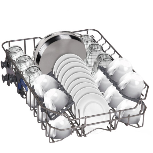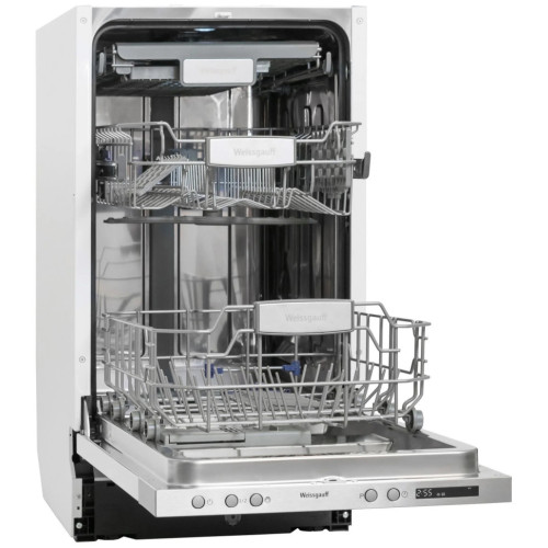 Узкая посудомоечная машина Weissgauff не только сэкономит место на кухне, но и обеспечит идеальный результат: 3 корзины позволят расположить посуду оптимальным образом для лучшего качества мытья, а наличие автопрограммы позволит машине самостоятельно определить количество посуды, степень загрязнения, время мойки, а также необходимую температуру. Благодаря современным продуманным и эргономичным корзинам, в машине можно разместить до 10 комплектов посуды одновременно. Функция «Луч на полу» позволяет определить, завершила ли посудомойка цикл, не открывая при этом дверцу. Внутренняя подсветка, реализованная в мягком синем цвете, даст возможность оценить качество мытья сразу после открытия дверцы машины. Половинная загрузка позволяет помыть даже небольшое количество посуды, не расходуя лишнюю воду и электричество. В быстром режиме машина всего за 30 минут проведёт мойку и ополаскивание. Этот режим отлично экономит время и подходит для той посуды, которая не требует сушки. Режим «Стекло» прекрасно подойдёт для стеклянных стаканов, тарелок, бокалов, фужеров и прочего: обеспечивает бережное обращение с посудой и отсутствие разводов на стекле после завершения цикла мойки. Режим «90 минут» — это гарантия великолепного результата за чётко определённый срок. Благодаря автопрограмме Blitz Wash посудомоечная машина с помощью датчиков и сенсоров самостоятельно определит степень загрязнённости посуды и выберет оптимальный температурный режим и интенсивность мытья. Интенсивная программа великолепно расправится даже с самыми сложными загрязнениями, гарантируя великолепный результат после каждого запуска. Экономичная программа подойдёт для мытья посуды с низким уровнем загрязнений, не расходует слишком много воды. Стандартная программа подойдёт для посуды среднего уровня загрязнённости, в том числе для кастрюль, тарелок и бокалов. Вертикальная регулировка средней корзины позволит быстро изменить внутреннее пространство посудомоечной машины и разместить посуду наиболее эргономичным образом, даже если корзина уже загружена посудой. Полностью электронное, интуитивно понятное управление сделает процесс запуска быстрым и лёгким. Таймер до 24 часов особенно удобен, если нужно начать цикл мытья в ночное время или во время вашего отсутствия: достаточно загрузить посуду в камеру, нажать кнопку, а всё остальное машина сделает сама. Возможность дозагрузки посуды на начальном этапе мойки обеспечивает дополнительное удобство. Полная защита от протечек AquaStop обеспечит защиту от затопления даже в случае повреждения шланга или гидроудара.