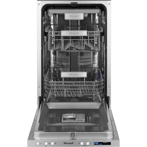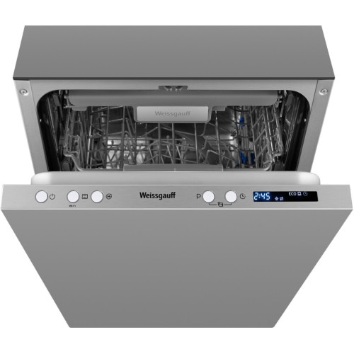 Узкая посудомоечная машина Weissgauff, оснащенная модулем Wi-Fi управления, не только сэкономит место на вашей кухне, но и обеспечит идеальный результат: 3 корзины позволят расположить посуду оптимальным образом для достижения наилучшего качества мытья, луч на полу дополнит прекрасный набор возможностей этой модели, а наличие автопрограммы позволит машине самостоятельно определить количество посуды, степень загрязнения, время мойки, а также необходимую температуру. * Три корзины, позволяющие разместить отдельно от остальной посуды в верхнем лотке сразу все ложки, вилки и ножи, обеспечивая при этом их наилучшее мытьё * Автоматическое открывание дверцы AutoOpen - по окончании цикла позволяет воздуху циркулировать естественным образом, обеспечивая в несколько раз более высокую эффективность сушки, чем у любой другой системы с закрытой дверцей. * Wi-Fi модуль с управлением через мобильное приложение, выведет удобство управления вашей посудомоечной машиной на новый уровень! Всего лишь скачайте приложение для вашего смартфона через специальный QR-код, размещенный в инструкции, и наслаждайтесь современным и удобным управлением вашим устройством * Голосовое управление через Яндекс.Алиса позволит Вам включать и выключать посудомоечную машину, ставить её работу на паузу, а также выбирать требуемую программу мытья, даже не вставая с места! * Функция "Луч на полу", позволяющая определить, завершила ли посудомойка свой цикл работы, не открывая при этом дверцу! * До 10 комплектов посуды одновременно вы можете расположить в данной посудомоечной машине, благодаря современным продуманным и эргономичным корзинам, которыми Weissgauff оснастили эту модель * Половинная загрузка, благодаря которой вы сможете помыть даже самое небольшое количество посуды, не расходуя воду и электричество больше, чем это необходимо. * Дополнительная сушка даст возможность добавить еще один этап просушивания по завершении основного цикла. Благодаря этому, ваша посуда будет не только чистой, но и невероятно сухой. * Быстрый режим, позволит вам управиться еще оперативнее: всего за 30 минут машина проведет мойку и ополаскивание. Данный режим идеально экономит ваше время и подходит для той посуды, которая не требует сушки * Режим "Стекло", прекрасно подойдет для стеклянных стаканов, тарелок, бокалов, фужеров и прочего, обеспечивая одновременно бережное обращение с помещённой посудой и отсутствие разводов на стекле после завершения цикла мойки * Режим "90 минут", это гарантия великолепного результата за четко определенный заранее срок! * Автопрограмма Blitz Wash поможет вам, в том случае если вы затрудняетесь с выбором программы мойки. Просто выберите авторежим, и посудомоечная машина, с помощью датчиков и сенсоров самостоятельно определит степень загрязненности вашей посуды и выберет оптимальный температурный режим и интенсивность мытья * Интенсивная программа великолепно расправится даже с самыми сложными загрязнениями, гарантируя великолепный результат после каждого запуска! * Экономичная программа подойдет для тех, кто хочет помыть посуду с низким уровнем загрязнений, не расходуя при этом излишне много воды! * Стандартная программа подойдет для посуды среднего уровня загрязненности, в том числе, кастрюль, тарелок и бокалов! * Вертикальная регулировка средней корзины по высот
