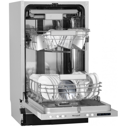 Узкая посудомоечная машина Weissgauff с инверторным двигателем не только сэкономит место на вашей кухне, но и обеспечит идеальный результат: 3 корзины позволят расположить посуду оптимальным образом для достижения наилучшего качества мытья, а наличие автопрограммы позволит машине самостоятельно определить количество посуды, степень загрязнения, время мойки, а также необходимую температуру.