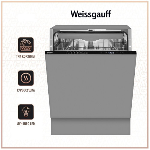 Современная и эффективная посудомоечная машина Weissgauff шириной 60 см оснащена тремя функциональными корзинами, специальным лучом INFO LED, и обладает вместимостью до 13 комплектов посуды. Удобное электронное управление дополняется интуитивно понятным крупным дисплеем. А 7 эффективных программ всегда помогут подобрать оптимальный режим в зависимости от типа посуды и уровня загрязненности. Три корзины, позволяющие разместить отдельно от остальной посуды в верхнем лотке сразу все ложки, вилки и ножи, обеспечивая при этом их наилучшее мытьё До 13 комплектов посуды одновременно вы можете расположить в данной посудомоечной машине, благодаря современным продуманным и эргономичным корзинам, которыми Weissgauff оснастили эту модель! 7 эффективных программ предлагают пользователю наиболее востребованные режимы: Эко, Интенсивная 65°С, Интенсивная мойка 70°С, Супер 50 минут, Деликатная 40°С, Быстрая 30 минут, Мини 14 минут Турбосушка существенно улучшит качество высушивания посуды по окончании цикла, позволяя значительно сэкономить ваше время после того как программа будет завершена! Луч INFO LED это особая технология, позволяющая вам легко понять, когда посудомоечная машина уже завершила свою работу. Благодаря данному лучу по окончании цикла создается область яркой подсветки, расположенная между панелью управления и верхней частью корпуса посудомоечной машины, которая наглядно сообщит пользователю о том, что программа закончена. Половинная загрузка, благодаря которой вы сможете помыть даже самое небольшое количество посуды, не расходуя воду и электричество больше, чем это необходимо. Панель управления с дисплеем, выполненная в современном технологичном дизайне с удобной индикацией, станет изящным и эстетичным решением, выводящим удобство работы с моделью на новый уровень! Таймер до 19 часов, который особенно удобен, если вы ходите начать цикл мытья в ночное время или во время вашего отсутствия. Всего лишь загрузите посуду в камеру, нажмите одну единственную кнопку - и всё остальное машина сделает сама! Индикаторы соли и ополаскивателя, всегда напомнят вам, когда нужно дозаправить посудомоечную машину для её эффективной и бесперебойной работы! Полностью электронное управление, интуитивно понятное даже человеку, никогда ранее не работавшему с подобной техникой, сделает процесс запуска быстрым и лёгким! Настройка уровня звукового сигнала позволит вам установить наиболее комфортный по громкости режим звукового оповещения! Возможность дозагрузки посуды, на начальном этапе мойки будет особенно удобна в случае, если вы забыли поместить в машину забытую на столе кастрюлю или тарелку Класс энергоэффективности A+++ это поистине высокий уровень качества Weissgauff, который позволяет с уверенностью говорить о том, что данная модель обеспечит отличный результат без лишних затрат электроэнергии.