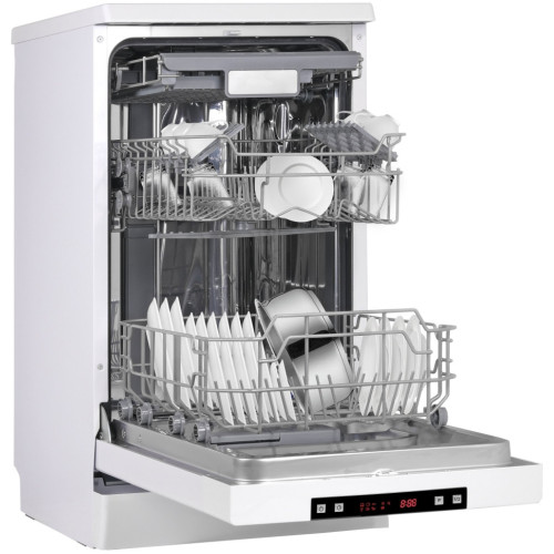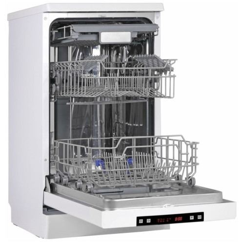 Посудомоечная машина WEISSGAUFF DW 4035 - узкая модель, которая не только экономит место на вашей кухне, но и гарантирует отличное качество мытья посуды. Имеет полностью электронное управление, 3 корзины, 1 из которых регулируется по высоте. В данной посудомоечной машине можно разместить и вымыть одновременно 10 комплектов посуды. Особенностью модели является возможность половинной загрузки, при которой посуды моется меньше при этом и воды, и электричества расходуется меньше. Посудомоечная машина WEISSGAUFF DW 4035 имеет 7 температурных режимов и 6 программ мытья посуды. Вы сможете отсрочить старт мытья максимально на 24 ч. Всего лишь загрузите посуду, нажмите одну кнопку, а все остальное машина сделает сама.