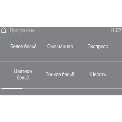 | Дополнительные программы | EcoSpeed/Гостиница/Антисминание/Пакет «Аквачистка»/Пакет «Верхняя одежда»/Пакет «Дезинфекция RKI»/Пакет «Дезинфекция»/Пакет «Домашний текстиль»/Пакет «Отель/Пакет «СПА/Пакет «Спецодежда»/Пакет «Спорт»/Салон красоты/Белые вещи/Махровые ткани/Дополнительное полоскание/Очистка/Накрахмаливание/Самоочистка/Сорочки/Тонкие ткани |