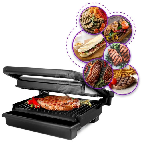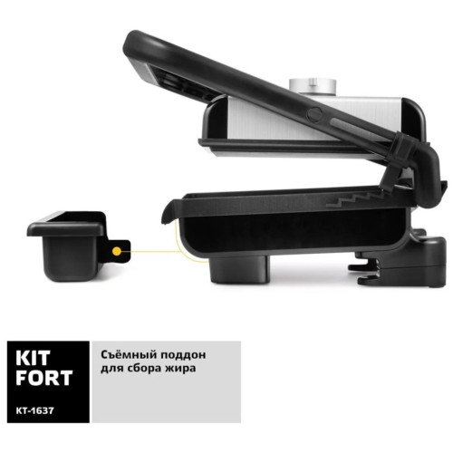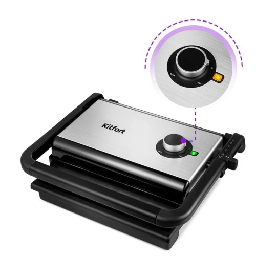 С помощью электрогриля Kitfort KT-1637 можно приготовить мясо, рыбу, сосиски-гриль, бутерброды, панини, сэндвичи, гренки, тосты и многое другое. Ребристая поверхность панелей и высокая температура поверхностей панелей способствуют быстрому приготовлению и появлению характерного полосатого рисунка на продуктах. Электрогриль оснащён термостатом для поддержания постоянной температуры панелей и индикатором, показывающим включение и отключение нагрева. Нагревательные панели изготовлены из алюминия с нанесённым антипригарным покрытием.