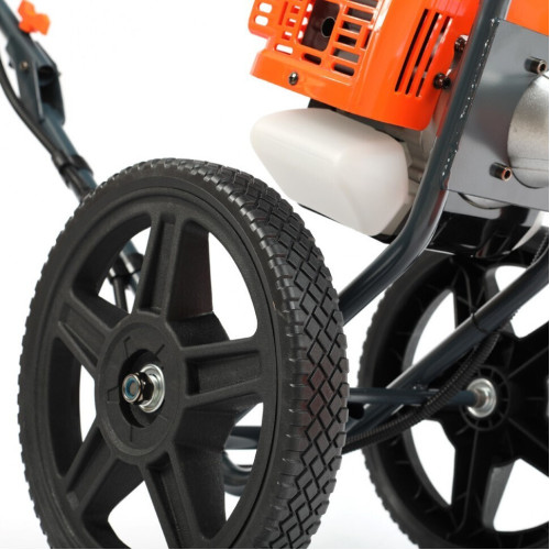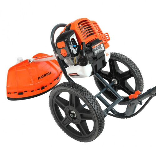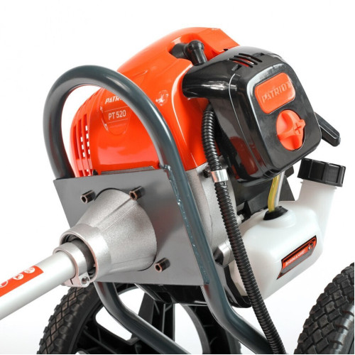 Бензиновый триммер – один из наиболее востребованных и распространенных садовых инструментов. Он предназначен для подравнивания выросшей травы возле деревьев и построек, а так же на участках с неровным ландшафтом, которые нельзя обработать традиционной газонокосилкой. Однако средний вес бензинового триммера колеблется около 13 кг и работа с ним требует физической подготовки. Особенно сложно с ним справиться людям в возрасте и хрупким молодым девушкам. Компания Patriot представляет новинку – газонокосилку PT 520. Это маневренный аппарат на основе популярной мотокосы PT 5555es Country, установленный на колесную базу. Теперь стрижка высокой травы больше не будет тяжелой задачей. Газонокосилка оснащена надежным двигателем, объемом 52 куб. см и мощностью 3 л.с. Система легкого запуска с предварительной подкачкой топлива максимально упрощает старт двигателя газонокосилки. За счет больших колес, установленных на подшипники, PT 520 обладает высокой проходимостью. Органы управления привычно расположены на триммерной U-образной рукоятке. Благодаря жесткому валу и крепкому редуктору газонокосилка легко справляется с высокой травой и бурьяном.