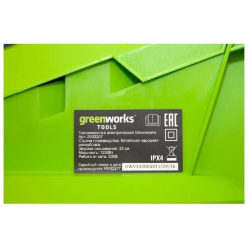 Газонокосилка электрическая greenworks 2502207 1200W 32cm