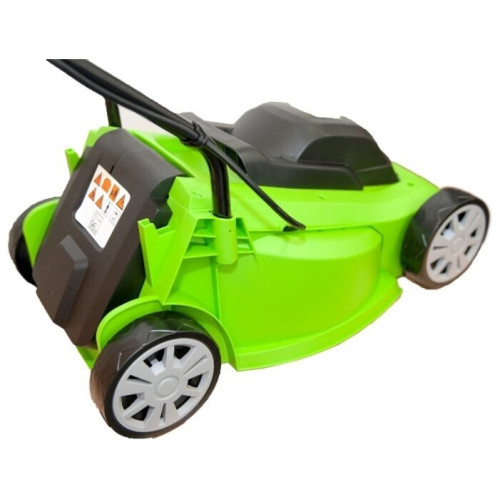 колесная газонокосилка электрический двигатель (1200 Вт) от сетевого кабеля ширина / высота скашивания: 33 см / 20-60 мм выброс травы в мягкий травосборник , назад мульчирование вес: 6.9 кг
