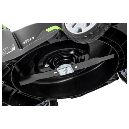 колесная газонокосилка электрический двигатель от аккумулятора (40 В / 6 А·ч) ширина / высота скашивания: 41 см / 20-70 мм площадь скашивания: 600 м² выброс травы в мягкий травосборник , назад мульчирование вес: 17.12 кг