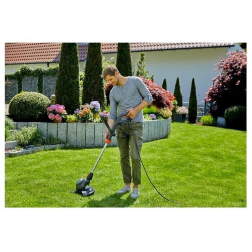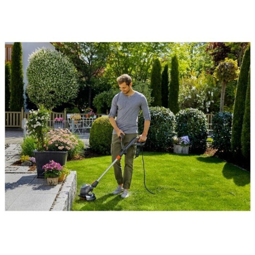 тип триммера: переносной мощность электродвигателя 650 Вт ширина скашивания 28 см режущий элемент триммера: леска конструкция штанги: прямая форма рукояти: D-образная наличие колес: нет вес 3 кг