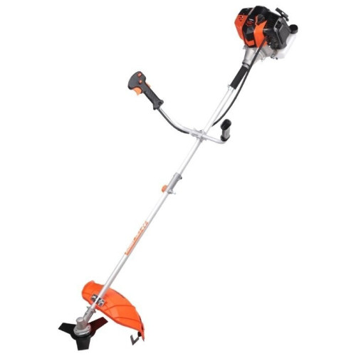 тип триммера: переносной мощность ДВС 2.5 л.с. двухтактный двигатель емкость топливного бака 1.1 л ширина скашивания 46 см режущий элемент триммера: леска и нож, леска 2.40 мм конструкция штанги: прямая форма рукояти: Т-образная (велосипедная) плечевой ремень / складная ручка наличие колес: нет вес 7 кг